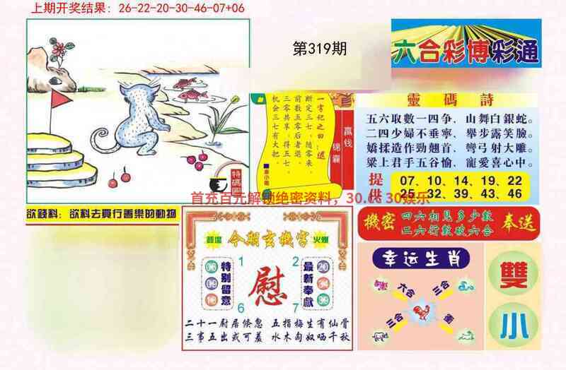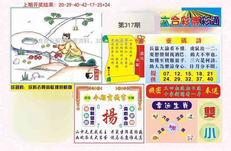 | 317期:无敌七肖【羊猴兔蛇鼠猪鸡】开:鼠18准 | |||