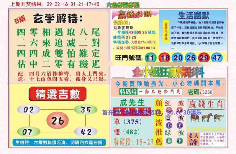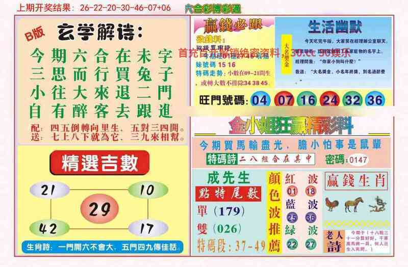 | 318期:无敌七肖【鼠马鸡龙猴虎猪】开:鼠06准 | |||